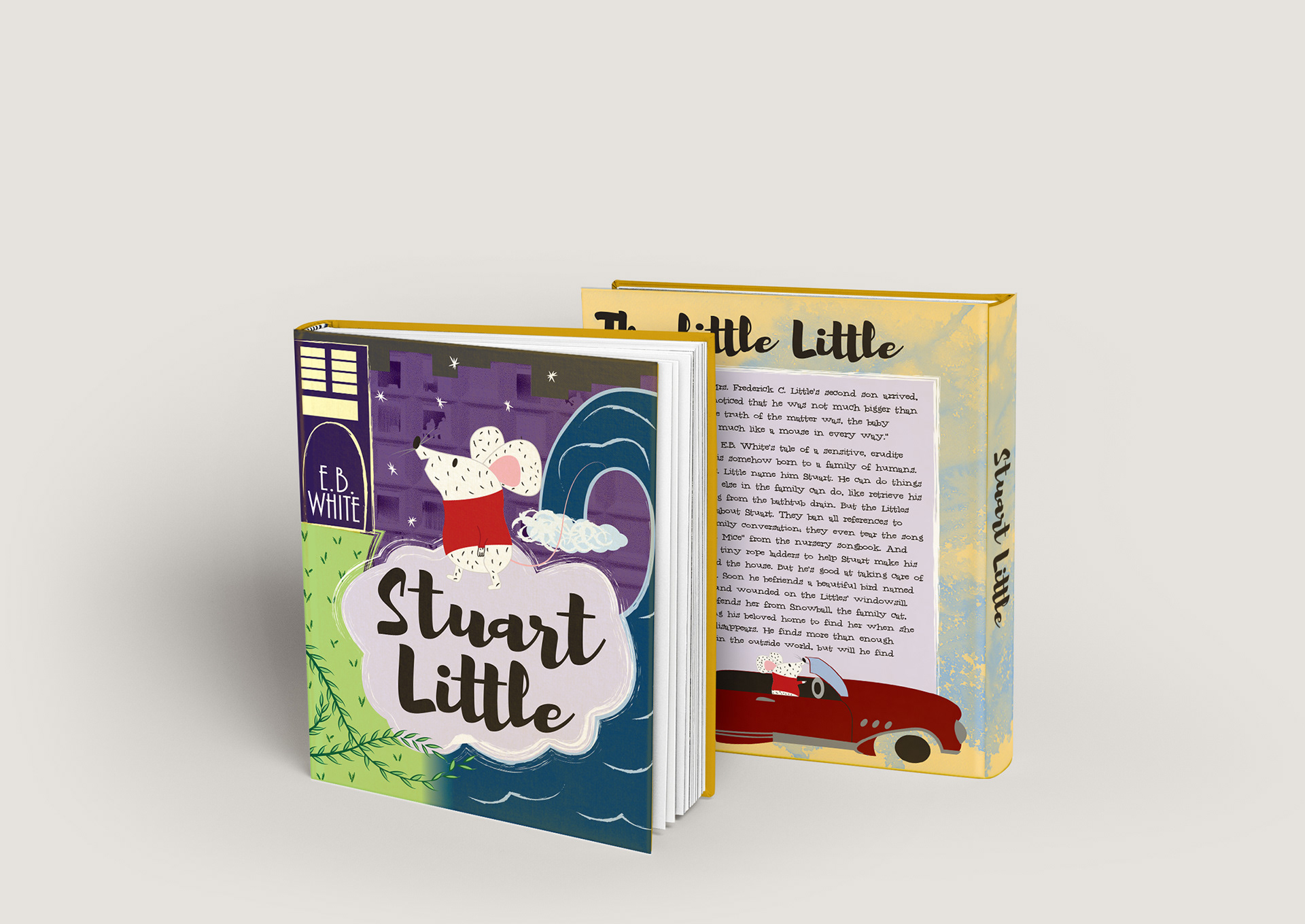 An illustrated cover and spread of the classic children's book Stuart Little.